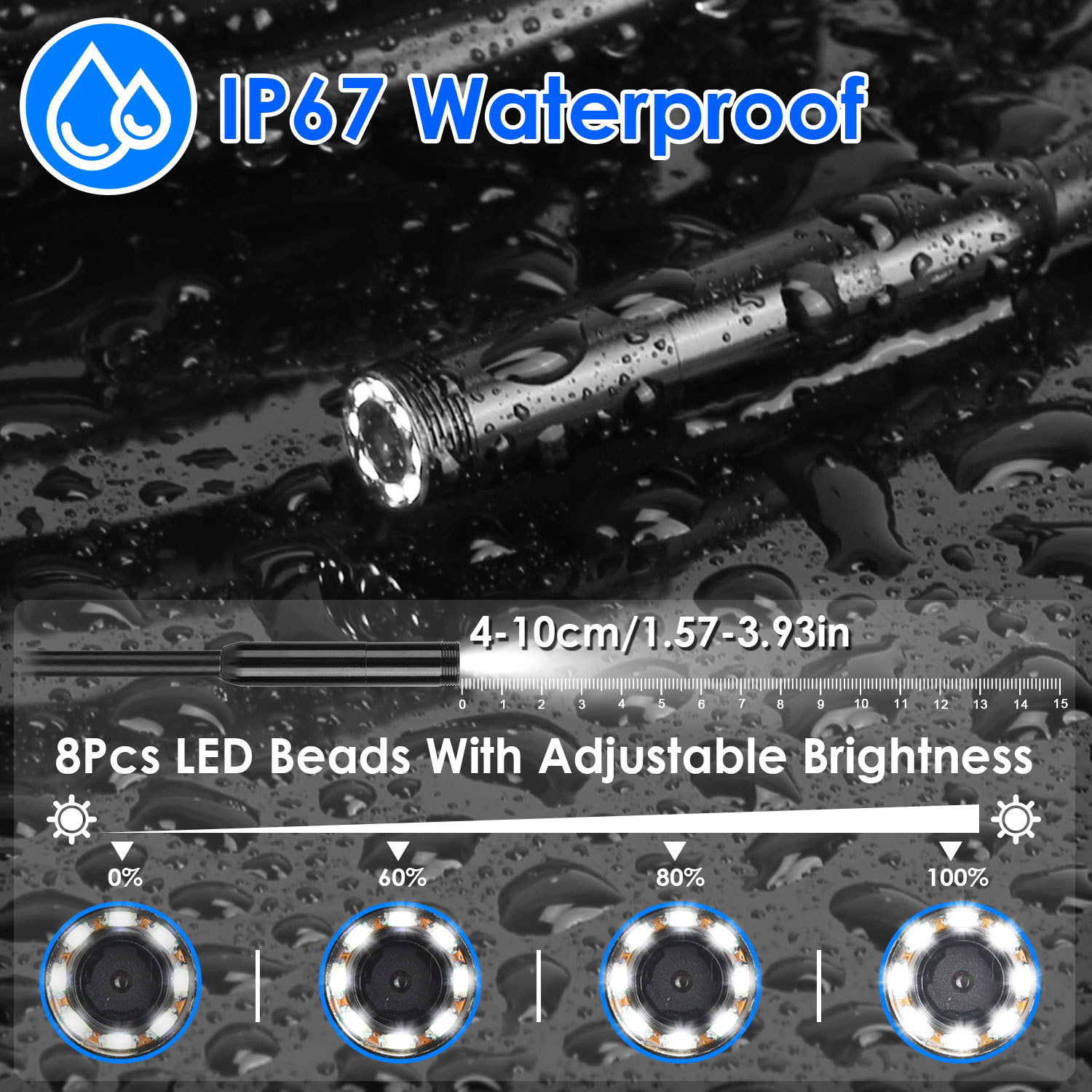 - Ready for wet jobs: IP67 camera end handles splashy, damp places like sinks and A/C lines (operates from 14–113 °F).
