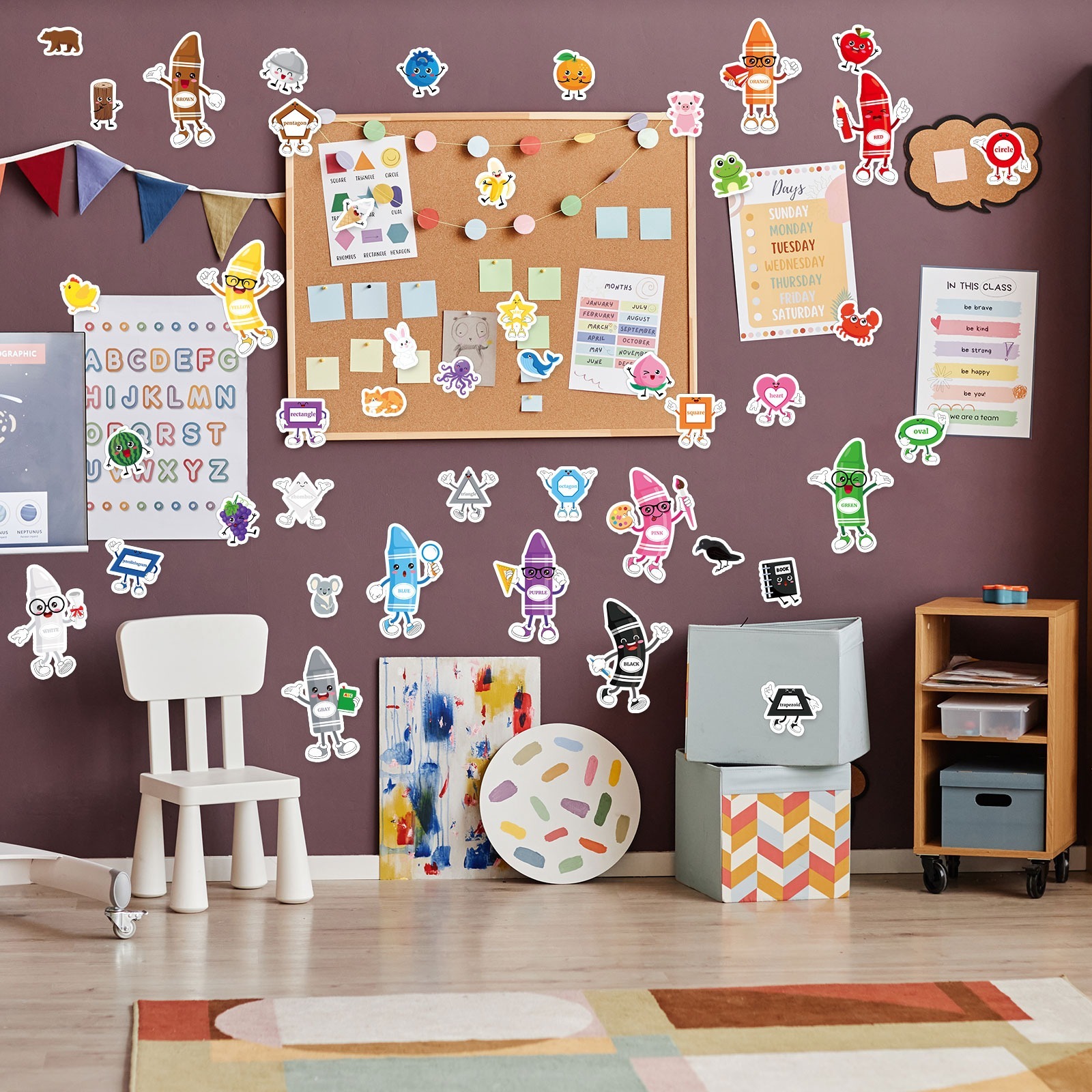 50-Piece Color Classroom Décor Set — Crayons, Animals, Fruits & Shapes + Adhesive Dots
