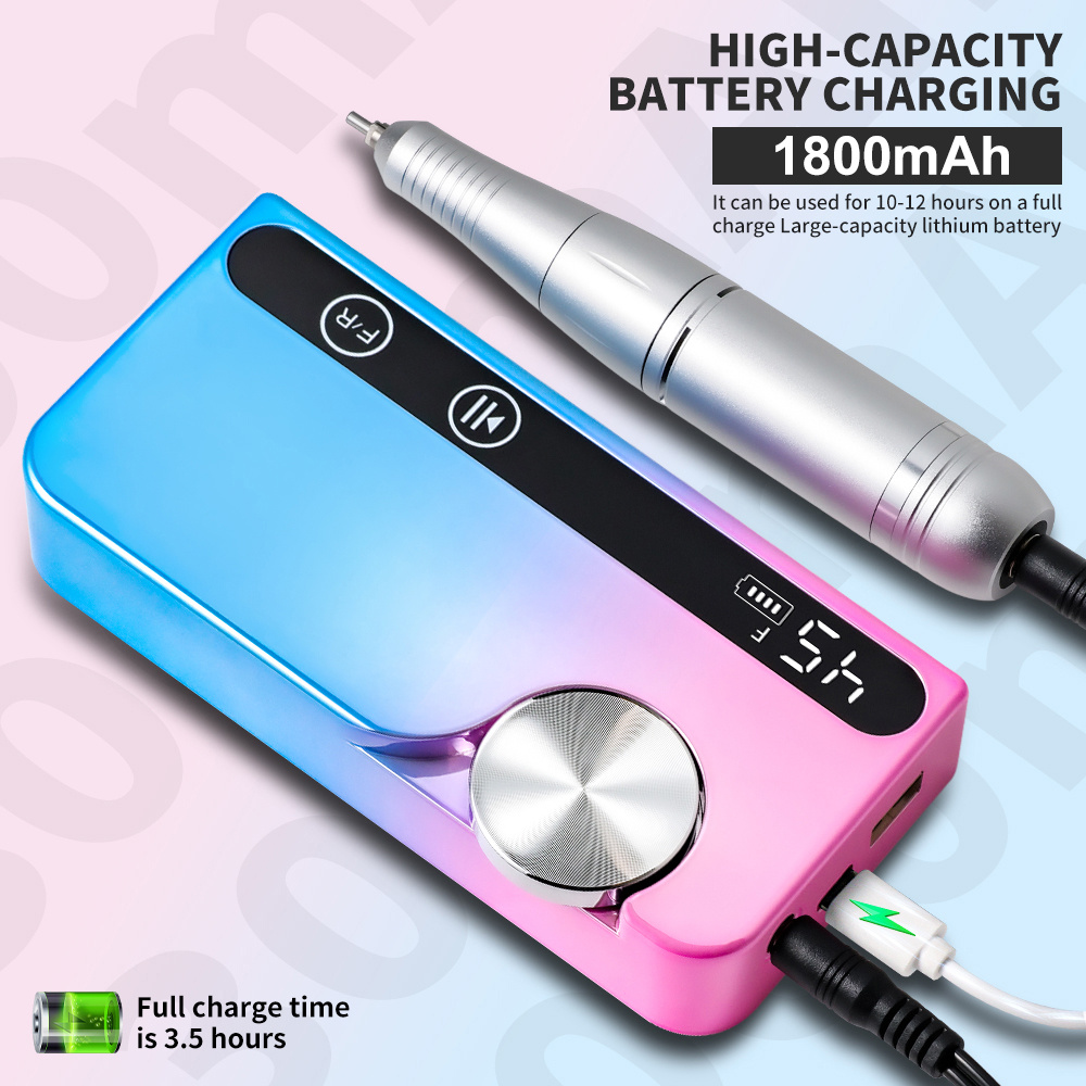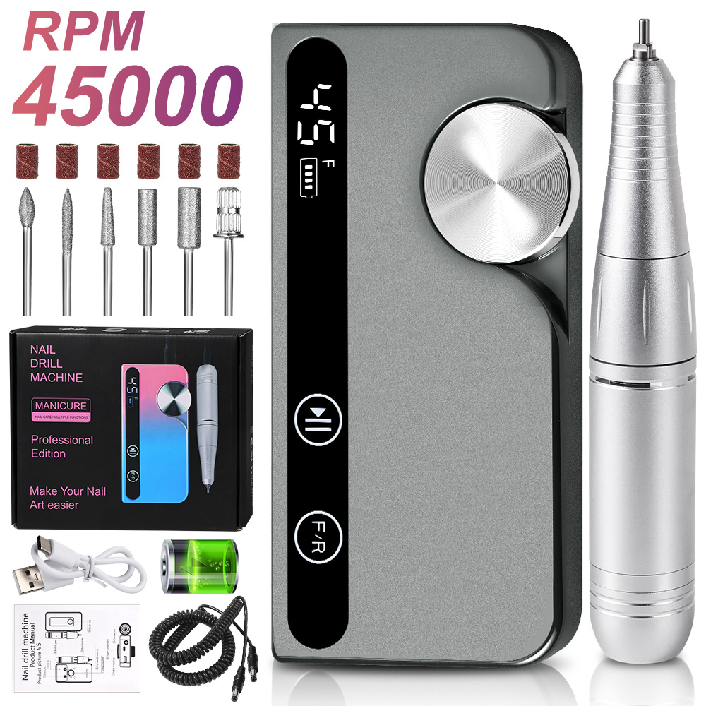 Pro Electric Nail Drill — 45,000 RPM Cordless E-File with LCD (12-Piece Kit)