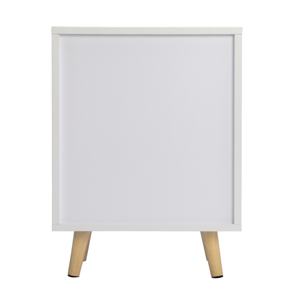 Set of 2 White Nightstands — Drawer + Closed Shelf, Pine Legs, Compact Footprint